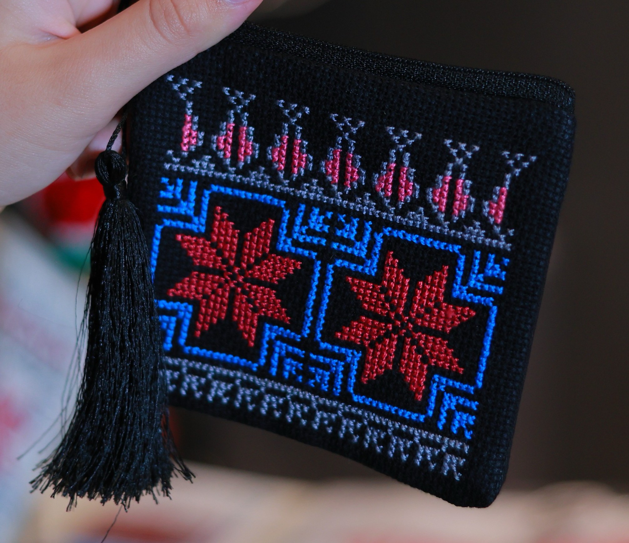 Unable to practice law in Cairo as a displaced person, Ola turned to what her hands could still do: Tatreez, the centuries-old Palestinian art of storytelling through stitch. Passed from mother to daughter, Tatreez is both living art and inheritance – a matrilineal language through which Palestinian women have preserved their identity and collective memory for generations. Each design reflects the maker’s origins, community, and experience, carrying forward a lineage of artistry and indigenous resistance.